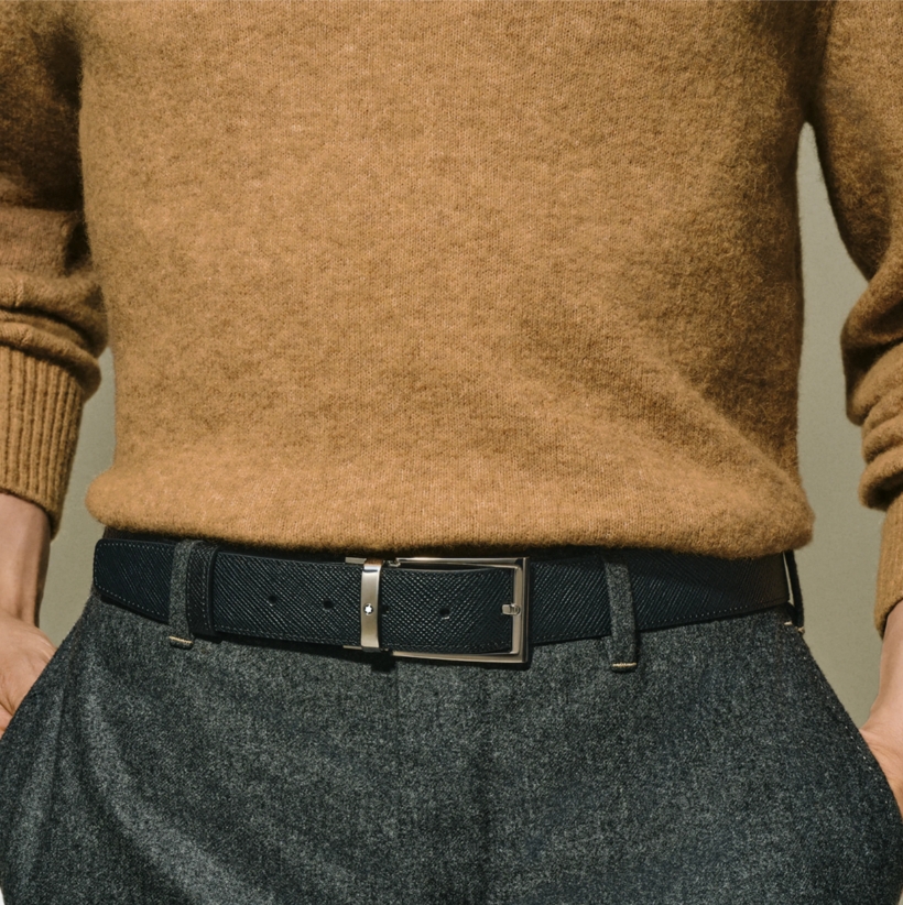 Двухсторонний мужской ремень Montblanc: кожа черного и коричневого цвета 35 мм от магазина премиальных ручек Premium Pens в Набережных Челнах.